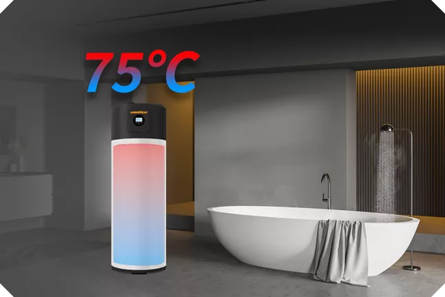 Deze warmtepompboiler kan een watertemperatuur tot wel 75 °C bereiken en zorgt zo voor een betrouwbare en efficiënte warmwatervoorziening. Ideaal voor moderne badkamers, want hij levert constant warm water voor uw dagelijkse behoeften, wat uw comfort en gemak verhoogt.